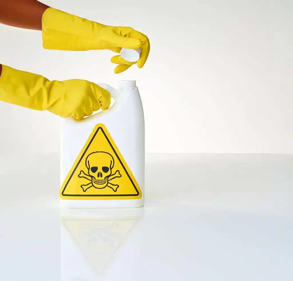 Hazardous substances may be single elements, compounds or a combination/mixture of these, and are easy to recognise as their packaging should feature a warning label indicating the hazard(s) they present.